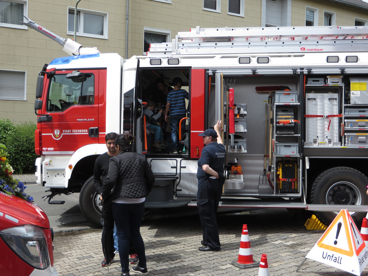elw-feuerwehr-eschborn-3Bei der Fahrzeugschau vor dem alten Feuerwehrgerätehaus in der Unterortstraße fand die neue mobile Einsatzzentrale hauptsächlich das Interesse von Erwachsenen. Für die zahlreichen Kinder waren die großen Autos, vor allem das riesige Tanklöschfahrzeug die Attraktion.
