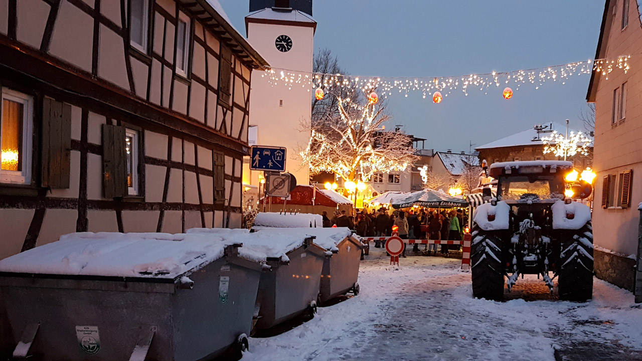Freie Zufahrt zum Eschborner Weihnachtsmarkt von der Kreuzung Hauptstraße/Unterortstraße.